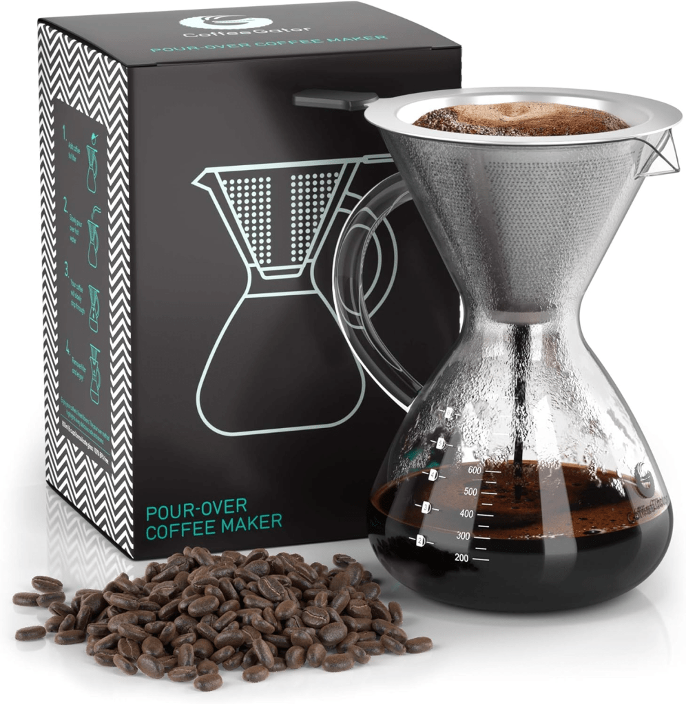 - Coffee Gator Pour Over: The Pour Over is very portable and lightweight. It’s a great option for travel or camping.